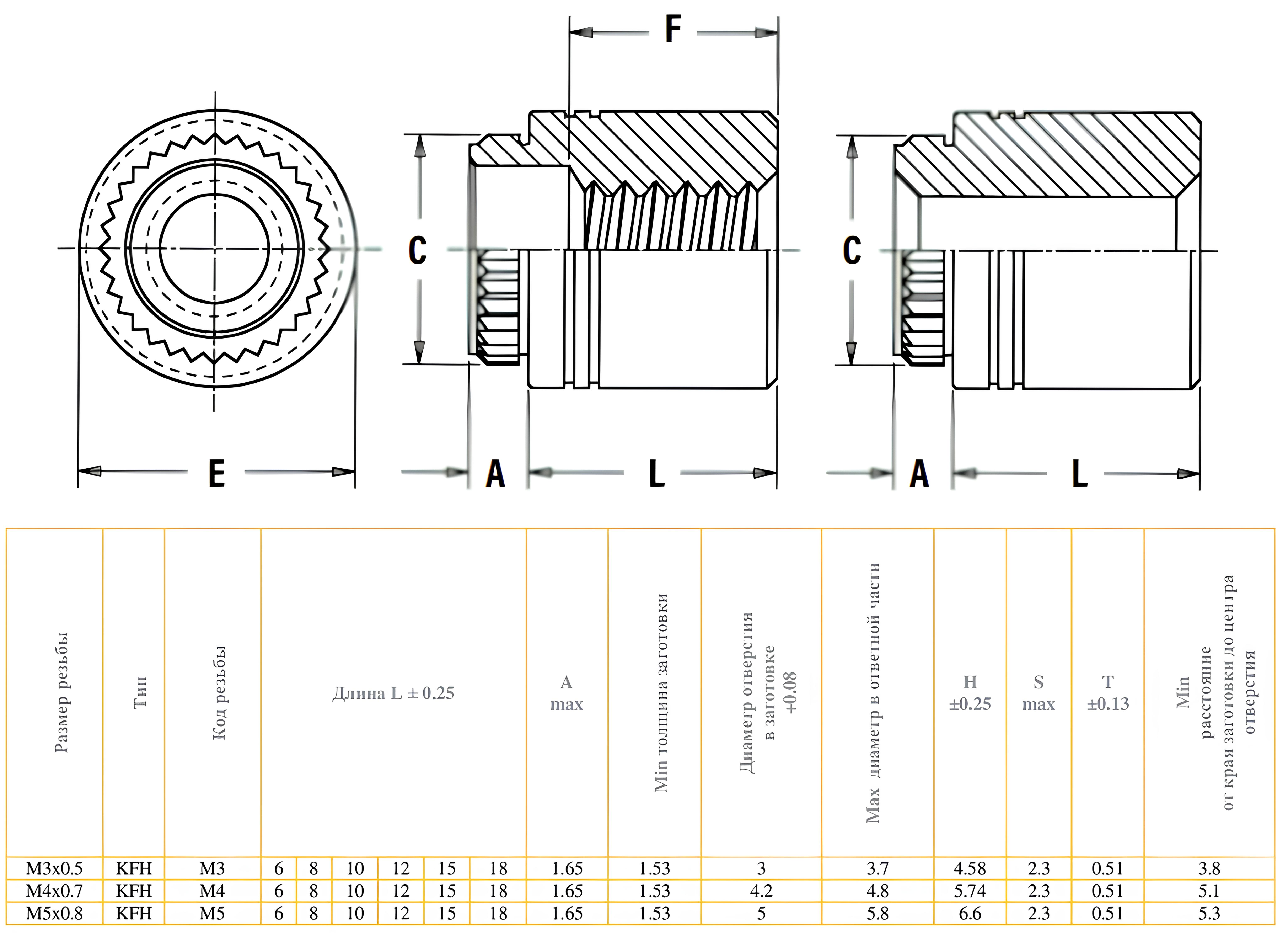 Шпилька запрессовочная резьбовая для печатных плат KFH-M3-8 et