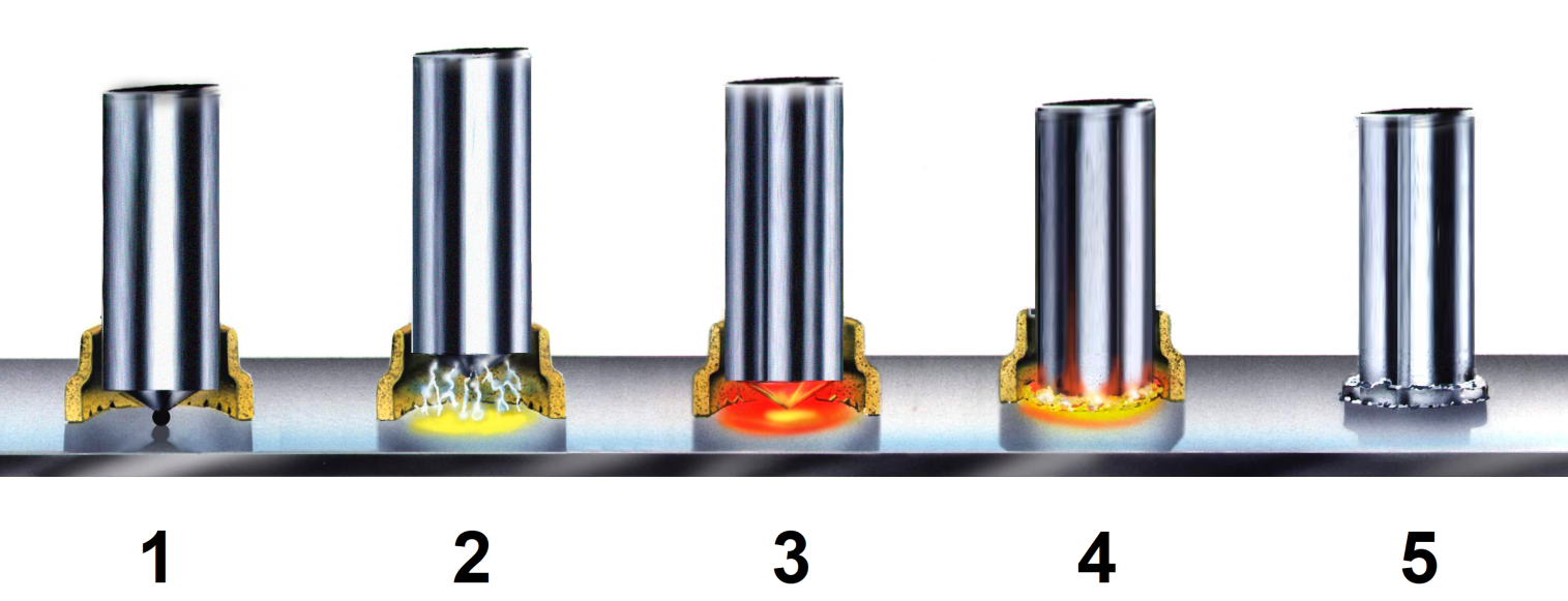 Следует учитывать, что длина шпильки (в зависимости от диаметра) после приварки уменьшается на 3-5 мм. Процесс приварки одного гибкого упора зависит от его диаметра и занимает от 0,2 – 0,8 секунд. Средняя производительность приварки шпилек-упоров составляет 6 - 8 шт. в минуту.