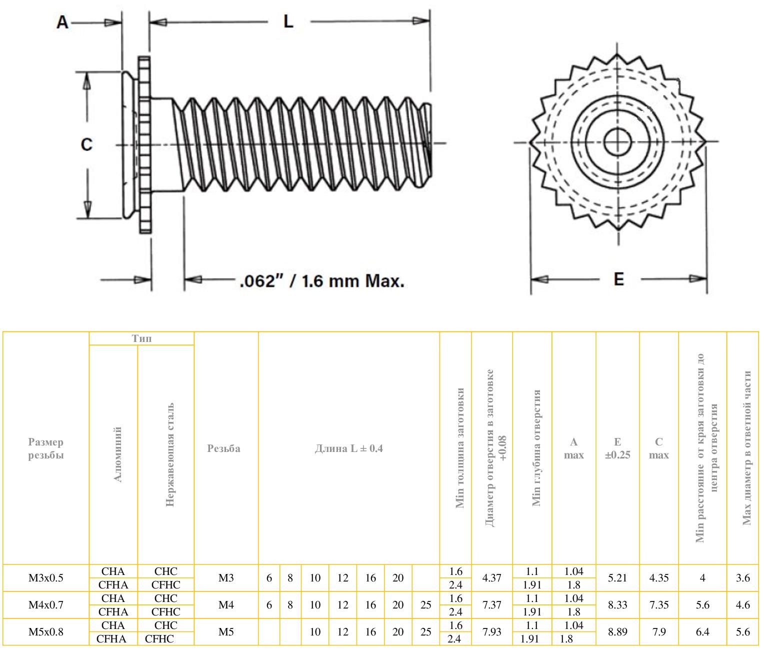 Резьбовая запрессовочная шпилька CFHA, CFHC, CHA, CHC